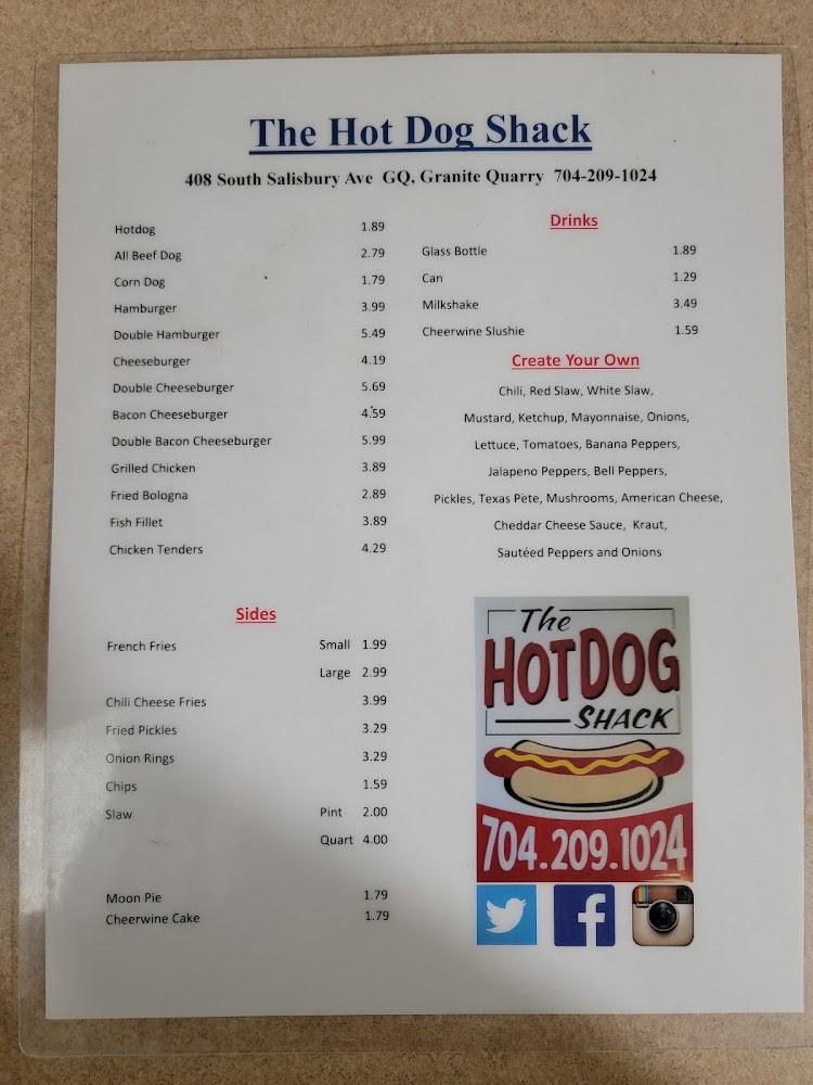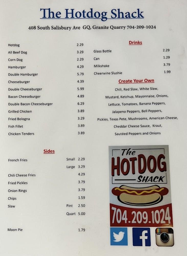 Welcome to The Hotdog Shack, your go-to destination for mouth-watering hot dogs in Granite Quarry, NC! Conveniently located at 408 US-52, we offer a cozy and accessible dining experience with outdoor seating and quick service. Our menu features delicious local specialties, perfect for lunch or dinner—ideal for solo dining or sharing with friends. Enjoy our casual ambiance as you savor flavorful chili, cheeseburgers, and more. With takeout, delivery, and catering options, we cater to every need. Bring the family along and explore our kid-friendly menu. Join us for a delightful meal today!